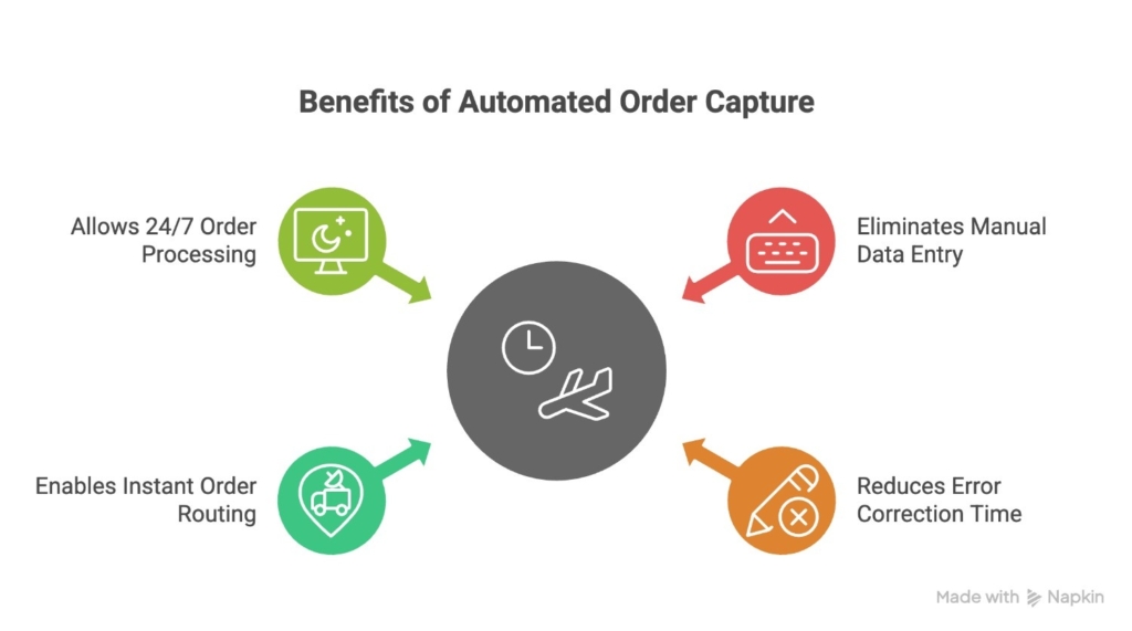 Das ist die offensichtlichste Zeitersparnis. Ihr Team muss nicht mehr Bestelldokumente durchlesen und Kundendaten, Produktcodes, Mengen und Preise manuell in Ihr ERP-System eingeben.